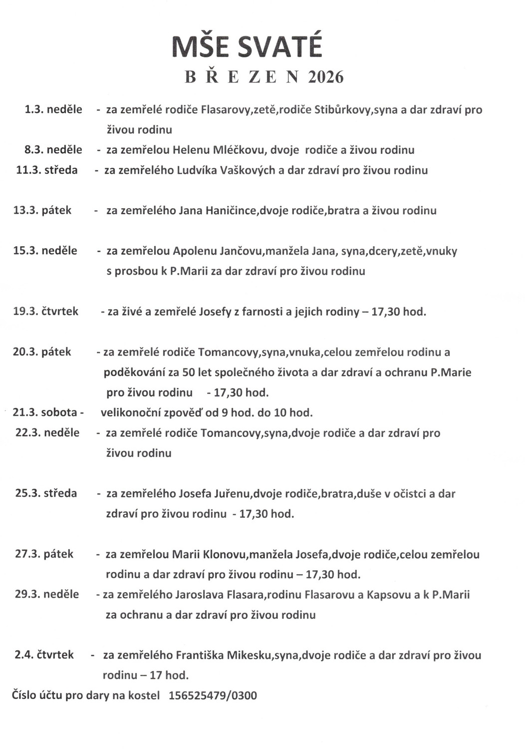 Mše svaté březen 2026