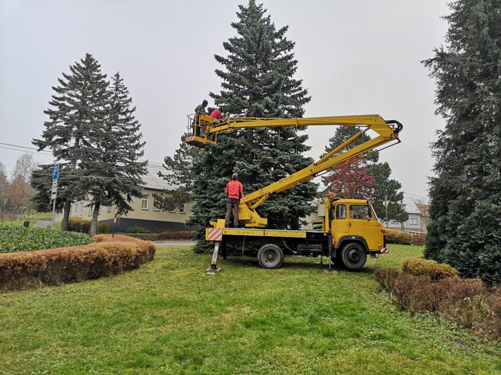 Dnes jsme začali vánoční strom v Korytné oblékat do nového kabátu.