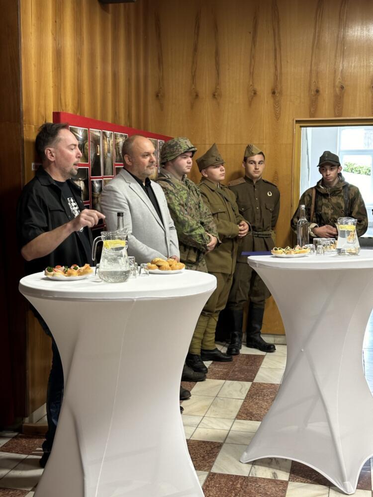 Symbolickým přípitkem a slavnostním, nikoliv přestřižením pásky, ale tak trochu stylovějším přecvaknutím ostnatého drátu, otevřel Marek za účasti své manželky a dcery, dveře k prohlídce artefaktů druhé světové války. Komu se poštěstilo, určitě si vychutnal Markův poutavý výklad týkající se jednotlivých vystavených kusů. Kdo pro velký zájem o tento výklad přišel, může si ho po předchozí domluvě vychutnat o víkendech.