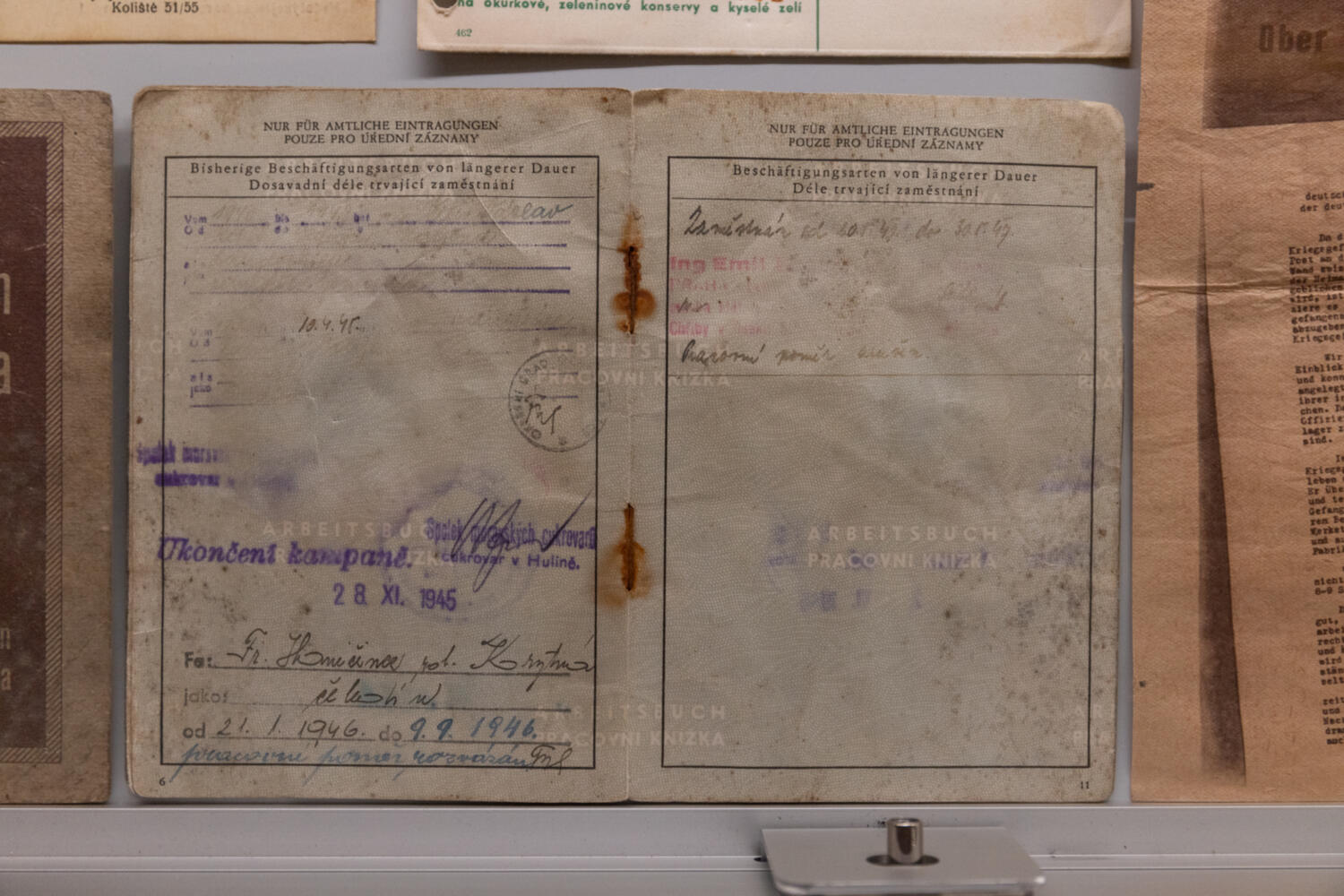 pracovní knížka, osobní předměty